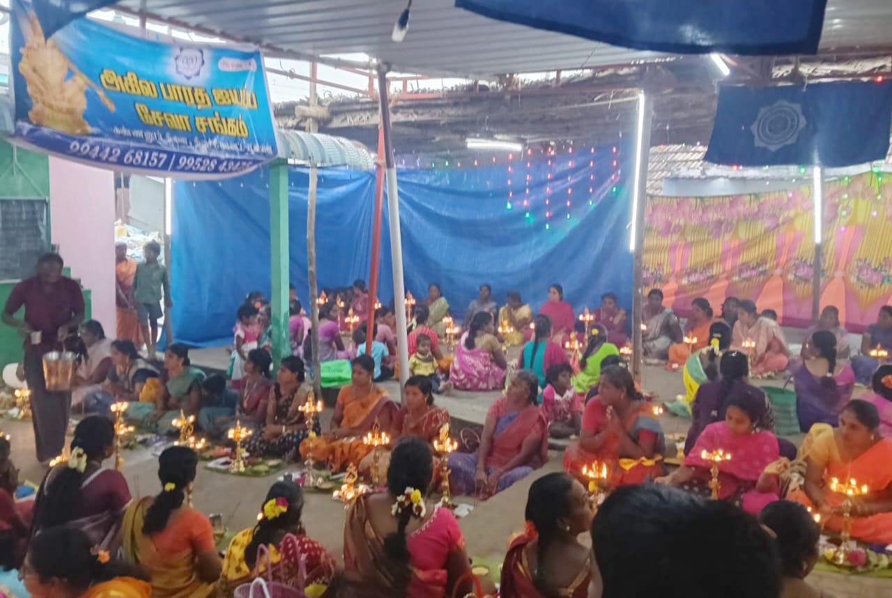 திருச்சி மாவட்டம் துறையூர் அருகே உள்ள கண்ணனூரில் அருள் பாலித்து வரும் அருள்மிகு ஶ்ரீமார்கண்டேயன் கோவிலில் அகில பாரத ஐயப்பா சேவா சங்கத்தின் சார்பாக108 குத்து விளக்கு பூஜை நடைபெற்றது.இதில் நூற்றிற்கும் மேற்பட்ட பெண்கள் பயபக்தியுடன் கலந்து கொண்டு குத்து விளக்கு ஏற்றி வழிபாடு செய்தனர்.இதில் கிளை தலைவர் ராஜ மன்னார் குருசாமி, செயலாளர் உதயகுமார் மற்றும் கீரிப்பட்டி கிளை செயலாளர் மகேஸ்வரன் மற்றும் கிளை நிர்வாகிகள் கலந்து கொண்டனர்.