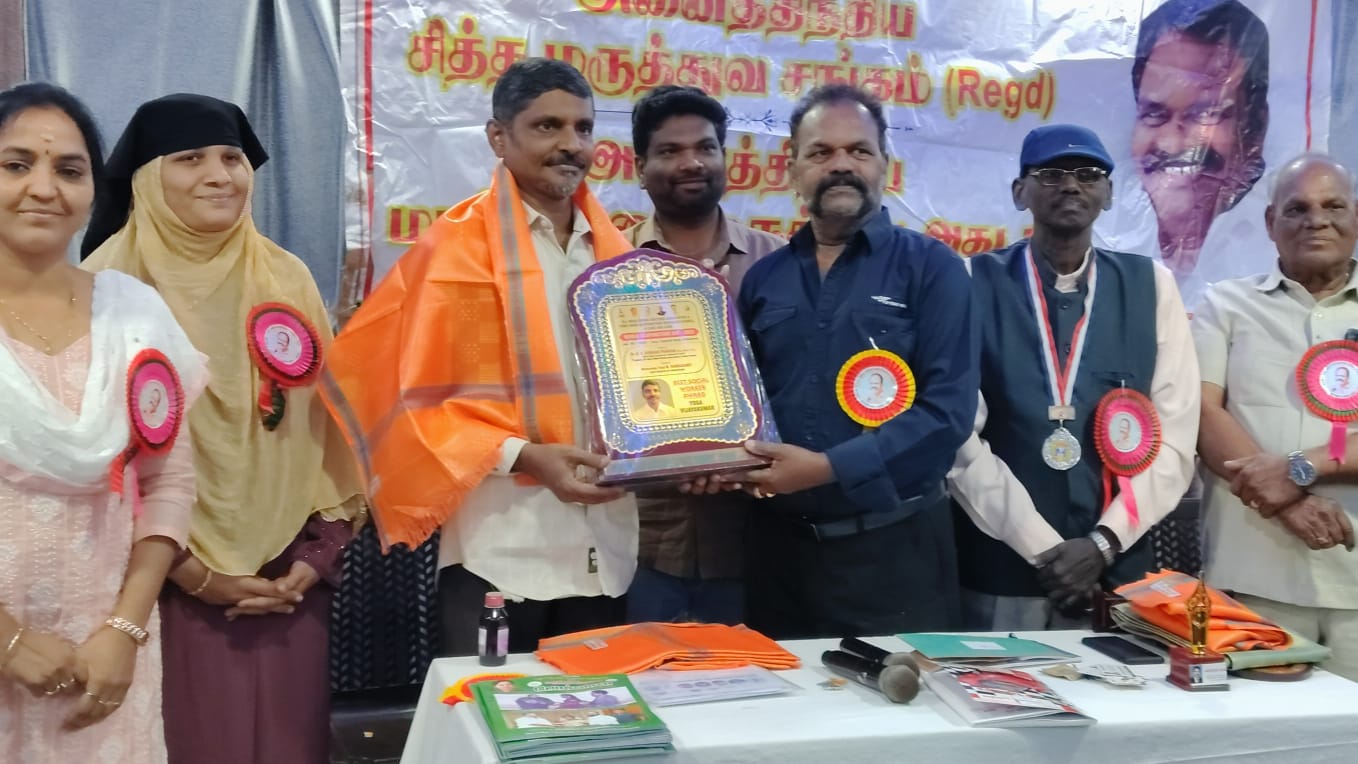 அனைத்திந்திய சித்த மருத்துவ சங்கம், அனைத்திந்திய மாற்றுமுறை மருத்துவ அகாடமி, தமிழ்நாடு அக்குபஞ்சர் ஆராய்ச்சி கவுன்சில் நிறுவனம் சார்பில் பெயர் விலாசம் தெரியாத, உரிமை கோரப்படாத, அடையாளம் காணப்படாத ஆதரவற்ற உரிமை கோரப்படாத பிணங்களை உரிய முறையில் கண்ணியமான முறையில் நல்லடக்கம் செய்யும் சமூக செயற்பாட்டாளருக்கு சிறந்த சமூக சேவகர்-2025 விருது வழங்கும் விழா திருச்சியில் நடைபெற்றது.