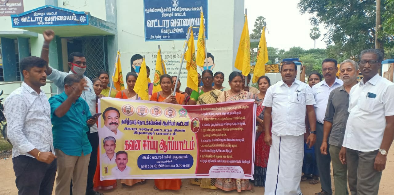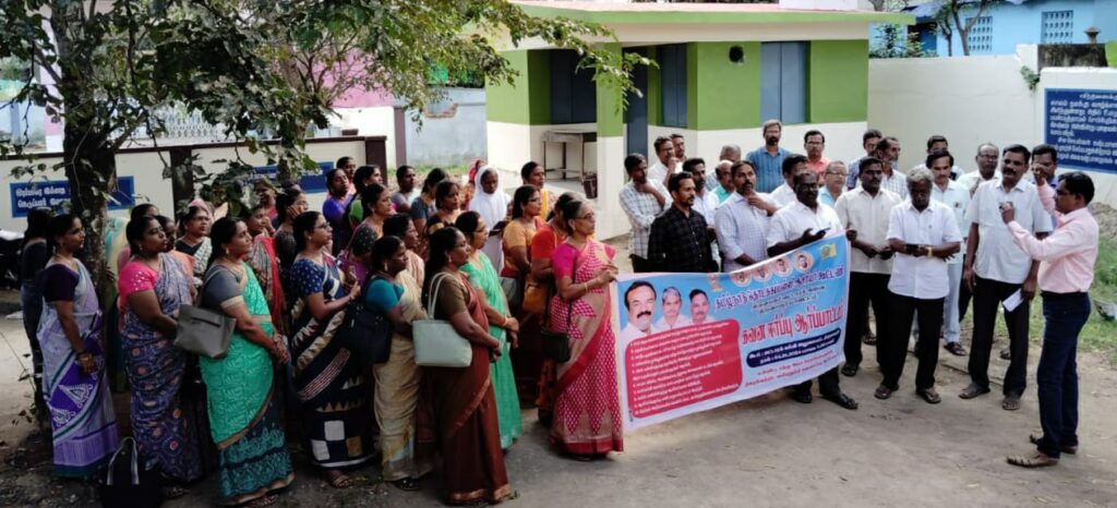 ஆர்ப்பாட்டத்தில் மாநில துணைச் செயலாளர் ஜூலியஸ் வட்டாரச் செயலாளர் தமிழரசன் உள்ளிட்டோர் பங்கேற்றனர் கோட்டூர் வட்டாரக் கல்வி அலுவலகம் முன்பு நடைபெற்ற ஆர்ப்பாட்டத்திற்கு வட்டாரத் தலைவர் தங்கபாபு தலைமை வகித்தார் ஆர்ப்பாட்டத்தில் மாநிலப் பொதுக்குழு உறுப்பினர்கள் செல்வமணி தமிழ்வாணன் வட்டாரச் செயலாளர் பாரதி உள்ளிட்டோர் கலந்து கொண்டனர் வலங்கைமானில் நடைபெற்ற ஆர்ப்பாட்டத்திற்கு வட்டாரத் தலைவர் பாலசுந்தரம் தலைமை வகித்தார்