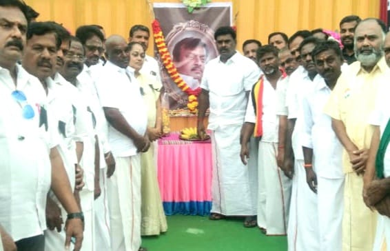 தேமுதிக தொண்டர்கள் 5 பேர் விஜய் காந்த் மறைவிற்கு மொட்டை அடித்தனர்.தொடர்ந்து அங்கு மலர்களால் அலங்கரிக்கப்பட்டு வைக்கப்பட்டிருந்த விஜயகாந்தின் உருவப்படத்திற்கு தேமுதிக மாவட்ட செயலாளர் பி கே சுப்பிரமணி தலைமையில் அனைத்து கட்சியினர் மலர் தூவி அஞ்சலி செலுத்தினார்கள்.