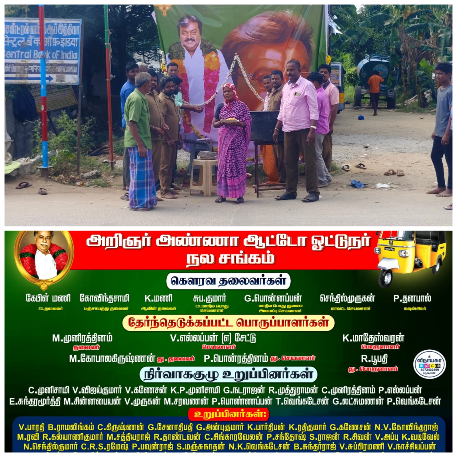 விஜயகாந்த் அவர்களின் இரங்கல் 11ஆம் நாள் துக்கத்தை அனுசரித்து அன்னதானம் வழங்க ப்பட்டது இதில் தலைவர்:M. முனிரத்தினம், செயலாளர்:V. சேட்டு பொருளாளர் : K. மாதேஸ்வரன் மற்றும் ஆட்டோ சங்க உறுப்பினர்கள் பொதுமக்கள் கலந்து கொண்டனர்.