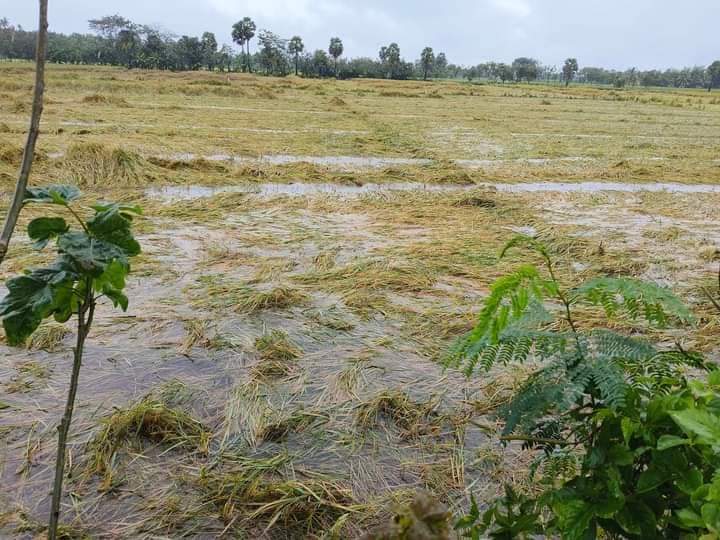 கிராமங்களில் அறுவடைக்குத் தயாராக இருந்த நெற்பயிர்கள் மழையில் நனைந்து தரையோடு தரையாக மடிந்து மூழ்கியுள்ளது. இதனால் விவசாயிகள் அறுவடை செய்ய முடியாத நிலை ஏற்பட்டுள்ளது. குறிப்பாக பொன்னி, பிபிடி சன்ன ரக போன்ற நெல் ரகங்கள் மார்கழி கடைசியிலும் தை மாதம் முதலிலும், அதாவது பொங்கலுக்கு அறுவடை செய்யும் காலக்கட்டமாகும். ஓரளவுக்கு நல்ல விலை கிடைக்கும் நேரத்தில் இப்பொழுது பெய்யும் மழை பருவம் தவறி செய்வதால் விவசாயிகளுக்கு பெருத்த நட்டத்தை ஏற்படுத்தி உள்ளது.