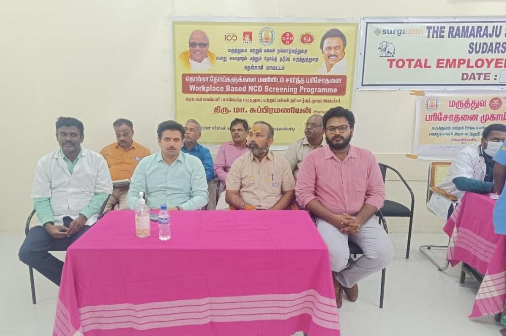 மருத்துவம் மற்றும் மக்கள் நல்வாழ்வுத்துறை, பொது சுகாதாரம் மற்றும் நோய் தடுப்பு மருந்து துறையின் சார்பாக தொற்றா நோய்களுக்கான பணியிடம் சார்ந்த தொழிலாளர்களுக்கு மக்களை தேடி மருத்துவ பரிசோதனை முகாமினை தொடங்கி வைத்தார்.