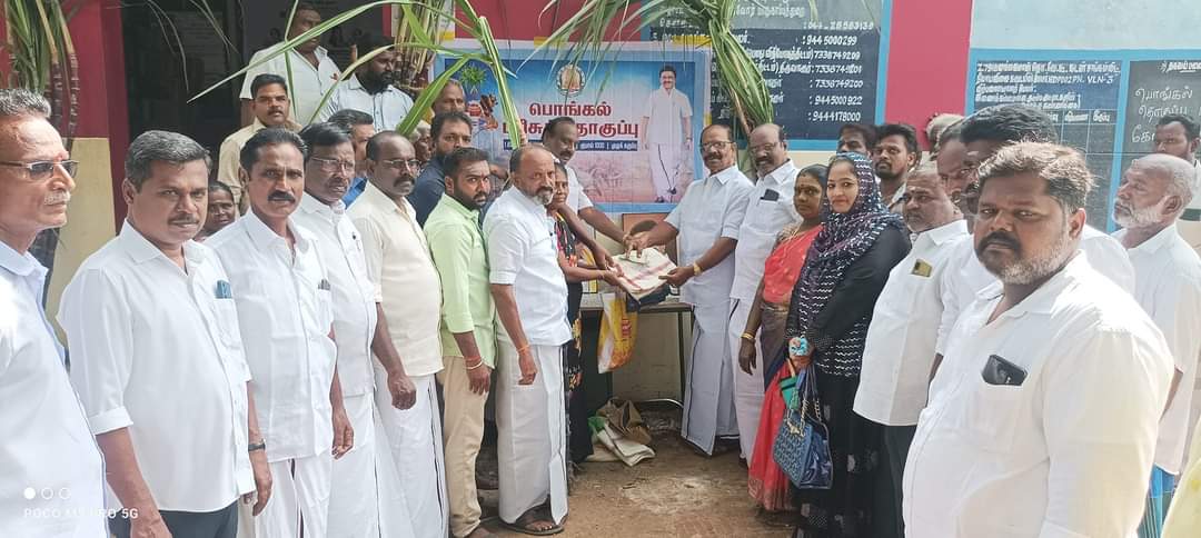 திருவாரூர் மாவட்டம் வலங்கைமான் தொடக்க வேளாண்மை கூட்டுறவு வங்கி வளாகத்தில் உள்ள அங்காடியில், வலங்கைமான் திமுக மேற்கு ஒன்றிய செயலாளர் வீ.அன்பரசன் தலைமையில், கிழக்கு ஒன்றிய செயலாளர் கோ. தட்சிணாமூர்த்தி வலங்கைமான் நகர செயலாளர் பா. சிவனேசன் ஆகியோர் முன்னிலையில் பொங்கல் பரிசுத் தொகுப்பினை குடும்ப அட்டைதாரர்களுக்கு ஒரு கிலோ பச்சரிசி, ஒரு கிலோ சர்க்கரை,முழு கரும்பு ஒன்னு, ரூபாய் ஆயிரம் ரொக்கம் வழங்கினார்கள்.