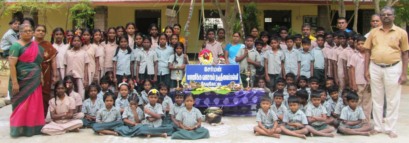 பள்ளி தலைமை ஆசிரியர் லெ .சொக்கலிங்கம் தலைமையில் ஆசிரியர்கள் ,சத்துணவு ஊழியர்கள் சக்கரை பொங்கல் சமைத்து மாணவர்களுக்கு வழங்கினார்கள் .பொங்கல் கோலம் ,விளையாட்டு, பேச்சு போட்டியில் வெற்றி பெற்ற மாணவர்களுக்கு பரிசுகள் வழங்கப்பட்டது.நிகழ்விற்கான ஏற்பாடுகளை ஆசிரியை முத்துலெட்சுமி , ஆசிரியர் ஸ்ரீதர் ஆகியோர் செய்து இருந்தார்கள் .