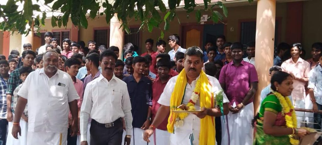 வலங்கைமான் சி. பி. ஜி. ஸ்ரீ சங்கரா மெட்ரிக் மேல்நிலைப் பள்ளியில் நடைபெற்ற பொங்கல் விழாவில் பாரம்பரிய உடை அணிந்து மாணவர்கள்- ஆசிரியர்கள் பங்கேற்றனர்.