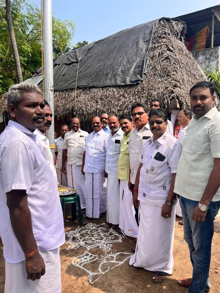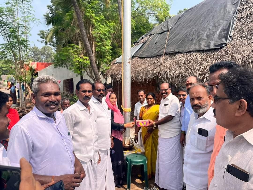 வலங்கைமான் புங்கஞ்சேரியில் தமிழர் திருநாளாம், பொங்கல் திருநாளை முன்னிட்டு நகர திமுக சார்பில் 60 அடி உயரத்தில் திமுக கொடி ஏற்றப்பட்டது.
