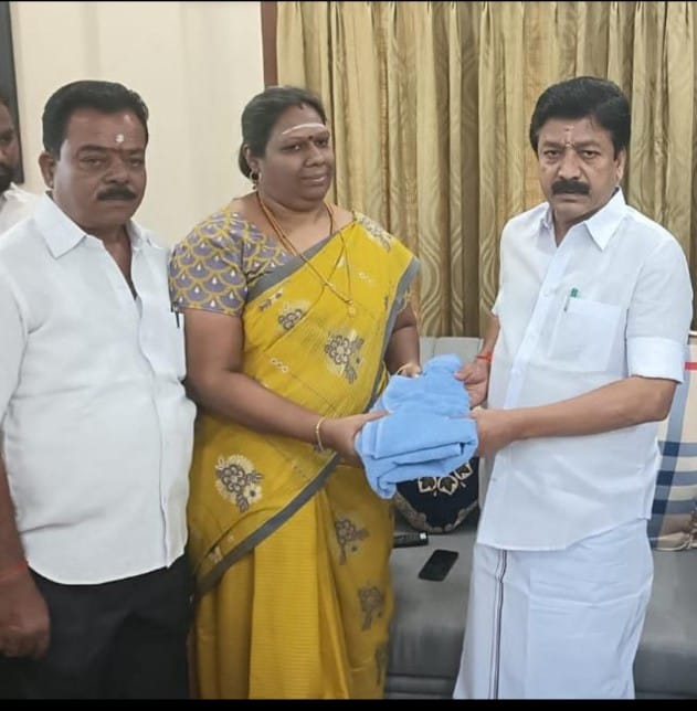 இந்நிலையில் அவர் விழுப்புரம் மாவட்ட செயலாளர் முன்னாள் அமைச்சரமான சிவி சண்முகத்தை நேரில் சந்தித்து ஆசி பெற்றார். இந்நிகழ்ச்சியின் போது மாவட்ட அம்மா பேரவை இணை செயலாளர் N.V.R. விஜயகுமார் உடன் இருந்தார்.