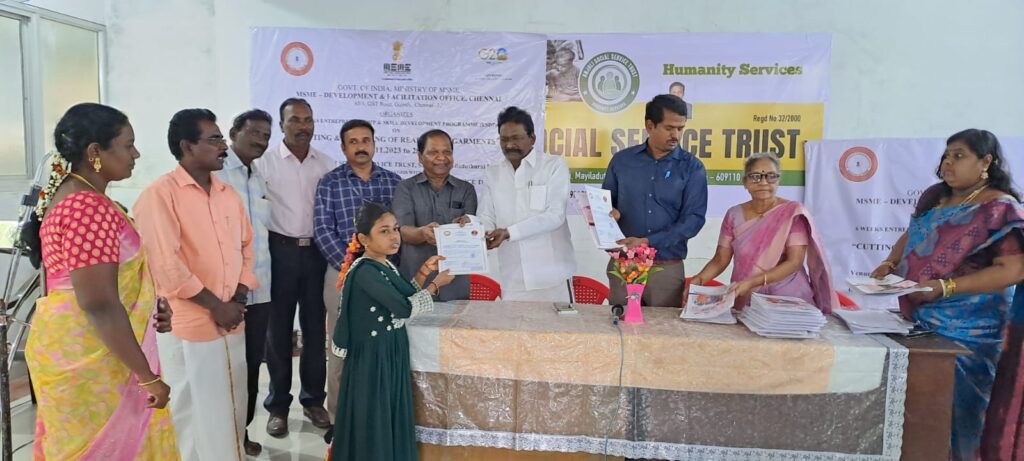 இந்நிகழ்வில்MSMEதுணை இயக்குனர் R.செந்தில்குமார் அவர்கள்MSME திட்டங்கள் குறித்து எடுத்துரைத்தார்கள். சீர்காழி சட்டமன்ற உறுப்பினர் M. பன்னீர்செல்வம் அவர்கள் கலந்து கொண்டு தலைமை தாங்கி பயிற்சி பெற்ற மாணவிகளுக்கு சான்றிதழ்கள் வழங்கி சிறப்புரை ஆற்றினார்கள்.