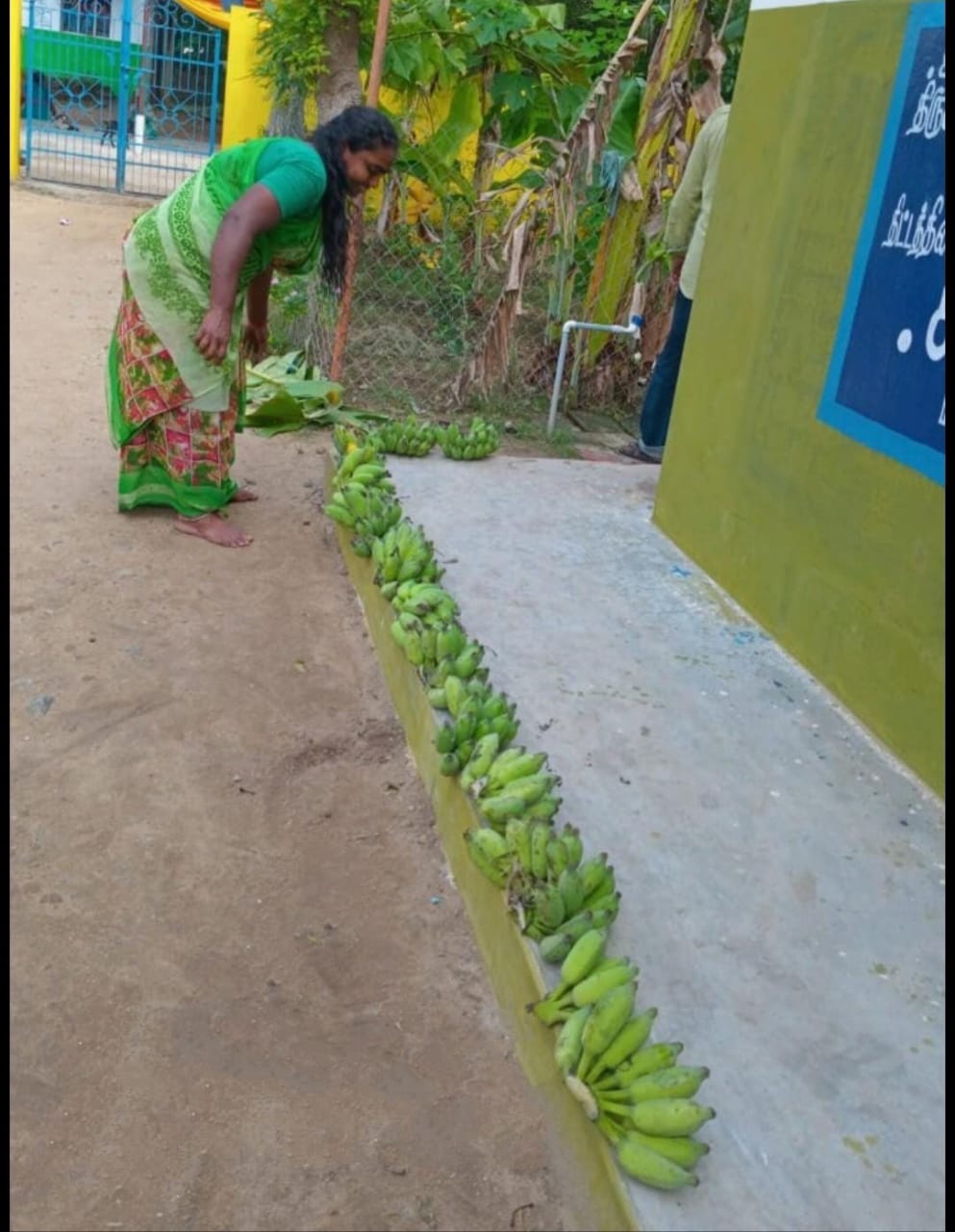 அரசு பள்ளிகளில் காய்கறி தோட்டம் அமைப்பதற்கான வழிகாட்டு விதிமுறைகளை தமிழக அரசு ஏற்கனவே அறிவித்துள்ளது. இந்நிலையில் “எங்கள் பள்ளி மிளிரும்பள்ளி” என்ற தூய்மை திட்டத்தின் கீழ்,அரசு துவக்கப்பள்ளி, அரசு நடுநிலை, உயர்நிலை மற்றும் மேல்நிலைப் பள்ளிகளில் பள்ளி காய்கறி தோட்டம் அமைக்க வேண்டும். நிலம் இல்லாத பட்சத்தில் தொட்டில்கள் மற்றும் உபயோகித்த பிளாஸ்டிக் பொருட்கள், அரிசி பைகள் கொண்டு பள்ளி காய்கறி தோட்டங்களை அமைக்கலாம். காய்கறி தோட்டம் அமைக்கப்படவுள்ள பகுதிக்கு அருகே, நீர் வசதி இருப்பதை உறுதி செய்ய வேண்டும். மாணவர்கள் கை கழுவும் நீரை பயன்படுத்தும் வகையில் அந்தப் பகுதிகளுக்கு அருகில் தோட்டத்தை அமைக்கலாம். கத்தரி, தக்காளி, கீரைகள், கொத்தமல்லி, அவரைக்காய், மிளகாய், வெண்டைக்காய், காராமணி, கொத்தவரங்காய், பீன்ஸ், முள்ளங்கி, பப்பாளி ஆகிய நன்றாக வளரும் காய்கறிகள் மற்றும் பழங்களை கொண்டு காய்கறி தோட்டம் அமைக்கலாம். விளைவிக்கப்படும் காய்கறிகளை பள்ளிகளில் மதிய உணவு தயாரிப்புக்கு வழங்கலாம். பள்ளிகளில் காய்கறி தோட்டம் அமைக்கவும், சுற்றுச்சூழல் மன்றம் சார்ந்த நிகழ்வுகளுக்கு ஆகவும், பள்ளி ஒன்றுக்கு ரூபாய் 5000 வீதம் வழங்கப்படும் என முன்னதாக கூறப்பட்டிருந்தது. இந்நிலையில் வலங்கைமான் அருகே உள்ள மதகரம் ஊராட்சியில் உள்ள ஆதிதிராவிடர் நல்ல துவக்க பள்ளியில் தமிழக அரசின் உத்தரவுக்கு இணங்க பள்ளி தலைமை ஆசிரியை புனித குமாரி மாணவர்கள் கூட்டு முயற்சியோடு பள்ளியின் அருகே காய்கறி தோட்டத்தை அமைத்தனர். அதில் விளைந்த காய்கறிகளை பள்ளி சத்துணவுவிற்கு பயன்படுத்தி வருகின்றனர். இந்நிலையில் காய்கறி தோட்டத்தில் வளர்க்கப்பட்ட பத்துக்கும் மேற்பட்ட வாழை மரங்களில், அஞ்சுக்கும் மேற்பட்ட வாழை மரங்கள் மகசூல் ஈன்ற நிலையில் வாழைத் தார்களை வெட்டி சீப்புகளாக பிரித்து மாணவர்களுக்கு விலை இல்லாமல் வழங்கப்பட்டது.