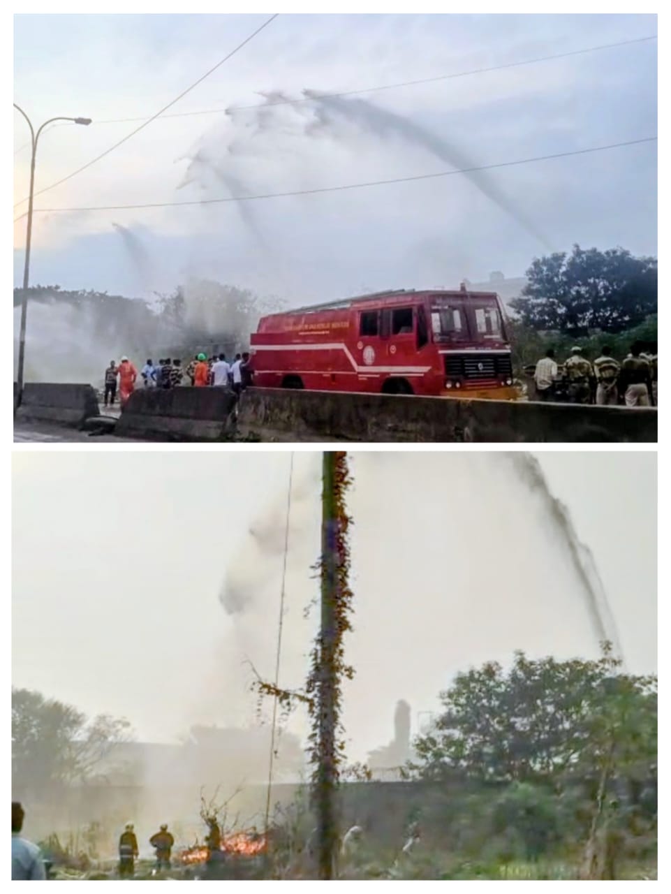 தனியார் நிறுவன குழாயில் ரசாயன கசிவுவல் தீ பற்றியதால்-மின்னல் வேகத்தில் செயல்பட்டதால் பெரும் விபத்து தவிர்கபட்டது..