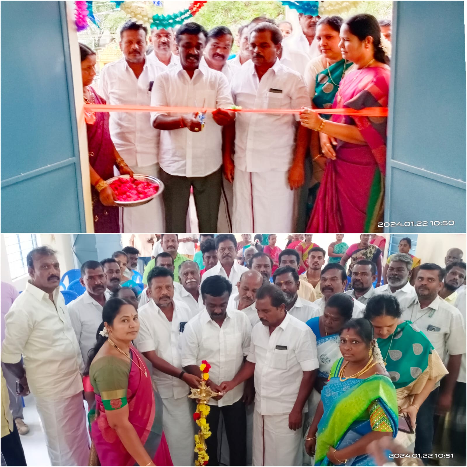 அலங்காநல்லூர் தேர்வு நிலை பேரூராட்சியில் சமுதாயக்கூடம் மராமத்து பணிகள் முடிந்து சட்டமன்ற உறுப்பினர் வெங்கடேசன் ரிப்பன் வெட்டி குத்துவிளக்கு ஏற்றி திறந்து வைத்தார்