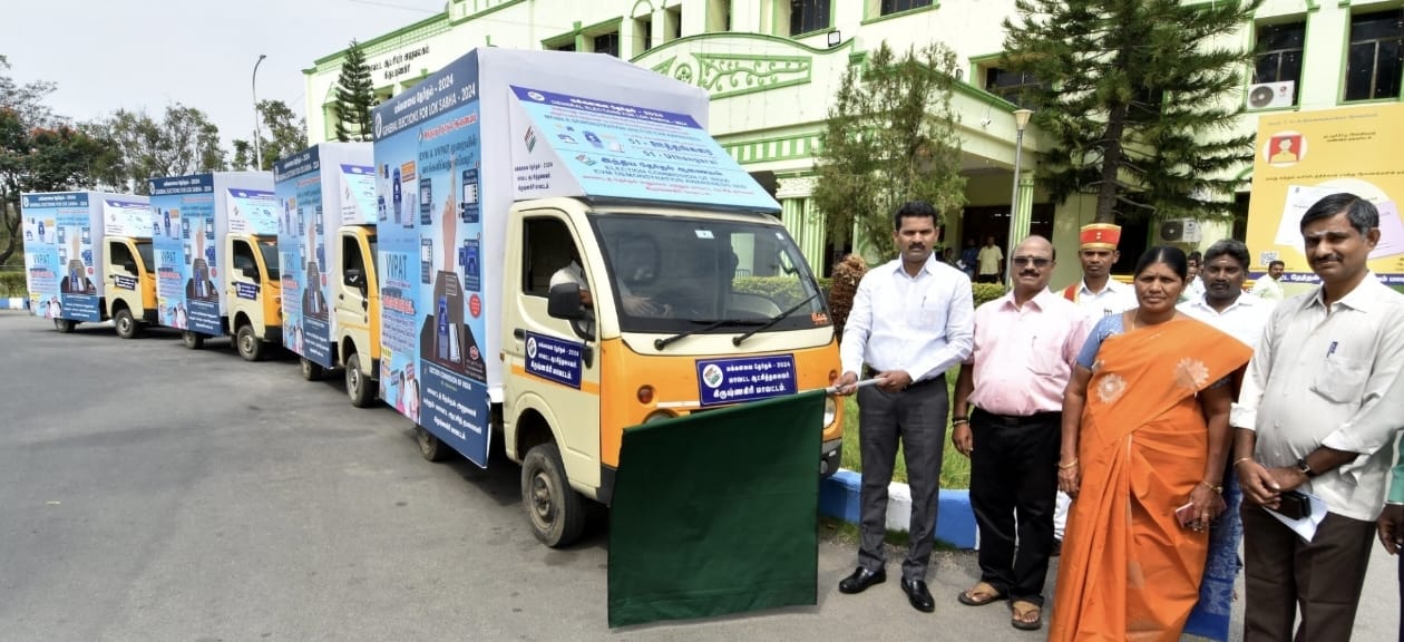 கிருஷ்ணகிரி மாவட்ட ஆட்சியர் அலுவலக வளாகத்தில், மக்களவைத் தேர்தல் 2024 முன்னிட்டு, மின்னணு வாக்கப்பதிவு இயந்திரம் செயல்முறை குறித்த விழிப்புணர்விற்கான நடமாடும் செயல்முறை விளக்க வாகனத்தை மாவட்ட வருவாய் அலுவலர் அ.சாதனைக்குறள் அவர்கள் கொடியசைத்து துவக்கி வைத்தார்.