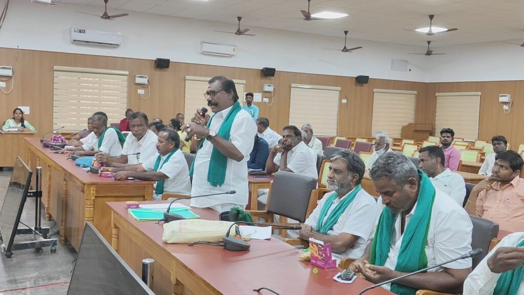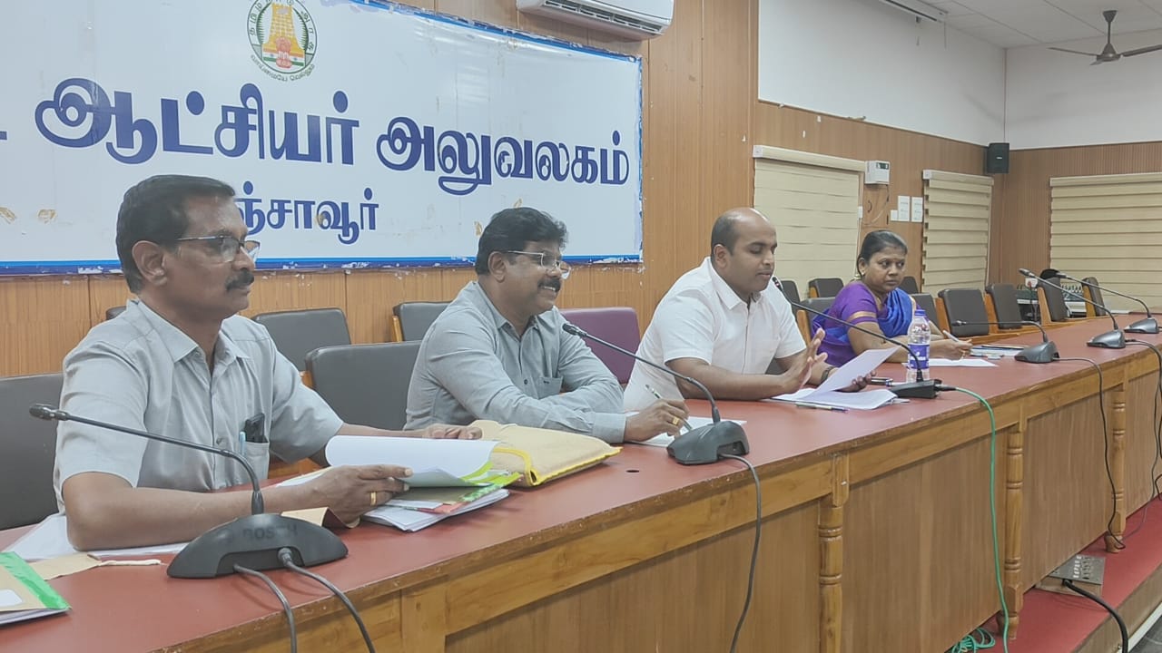 கூட்டத்திற்கு தஞ்சாவூர் மாவட்ட ஆட்சித் தலைவர் தீபக் ஜேக்கப் தலைமை வகித்தார் வேளாண்மை பொறியியல் துறை செயற்பொறியாளர் செல்லக்கண்ணு வேளாண்மை இணை இயக்குனர் நல்லமுத்து ராஜா மாவட்ட ஆட்சியரின் வேளாண்துறை நேர்முக உதவியாளர் திருமதி கோமதி தங்கம் ஆகியோர் முன்னிலை வகித்தார்கள் காவிரி டெல்டா விவசாயிகள் சங்க தலைவர் ஏ கே ஆர் ரவிச்சந்தர் பேசுகையில் ஆண்டுதோறும் மாவட்ட ஆட்சி தலைவர் தலைமையில் முத்தரப்பு கூட்டம்
