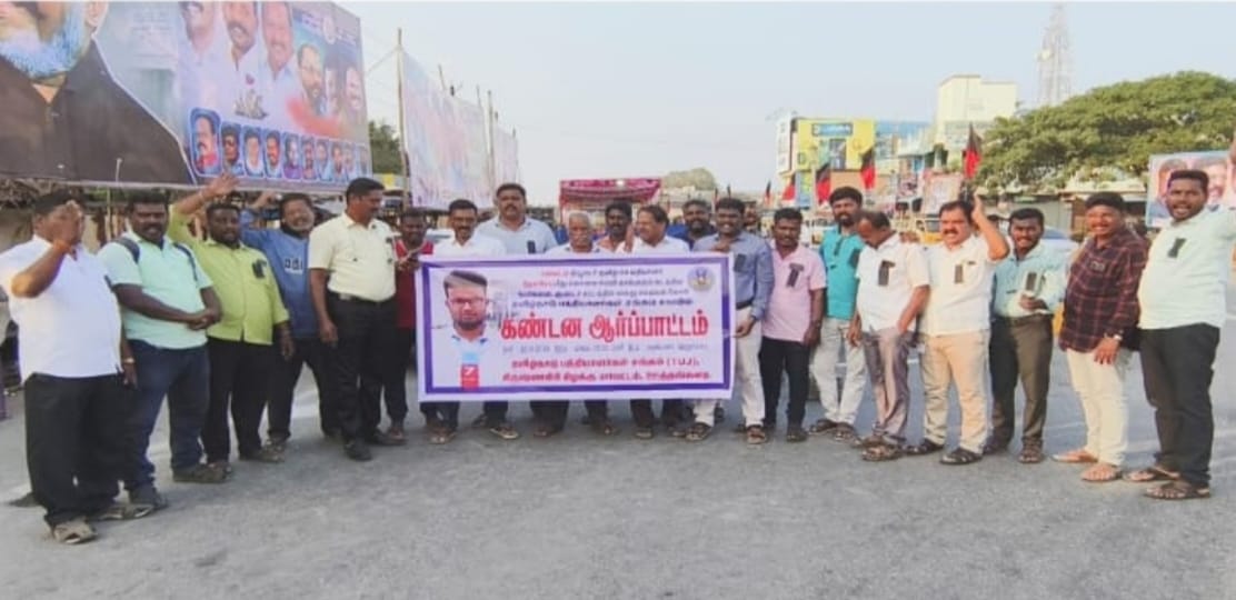 பத்திரிகையாளர்கள் பாதுகாப்பை தமிழ்நாடு அரசு உறுதி செய்ய வேண்டும் எனவும் பாதிக்கப்பட்ட பத்திரிகையாளரின் குடும்பத்திற்கு 10 லட்சம் நிவாரணம் மற்றும் மருத்துவ செலவை அரசே ஏற்க வேண்டும் என கோரிக்கைகள் வைத்தனர்.