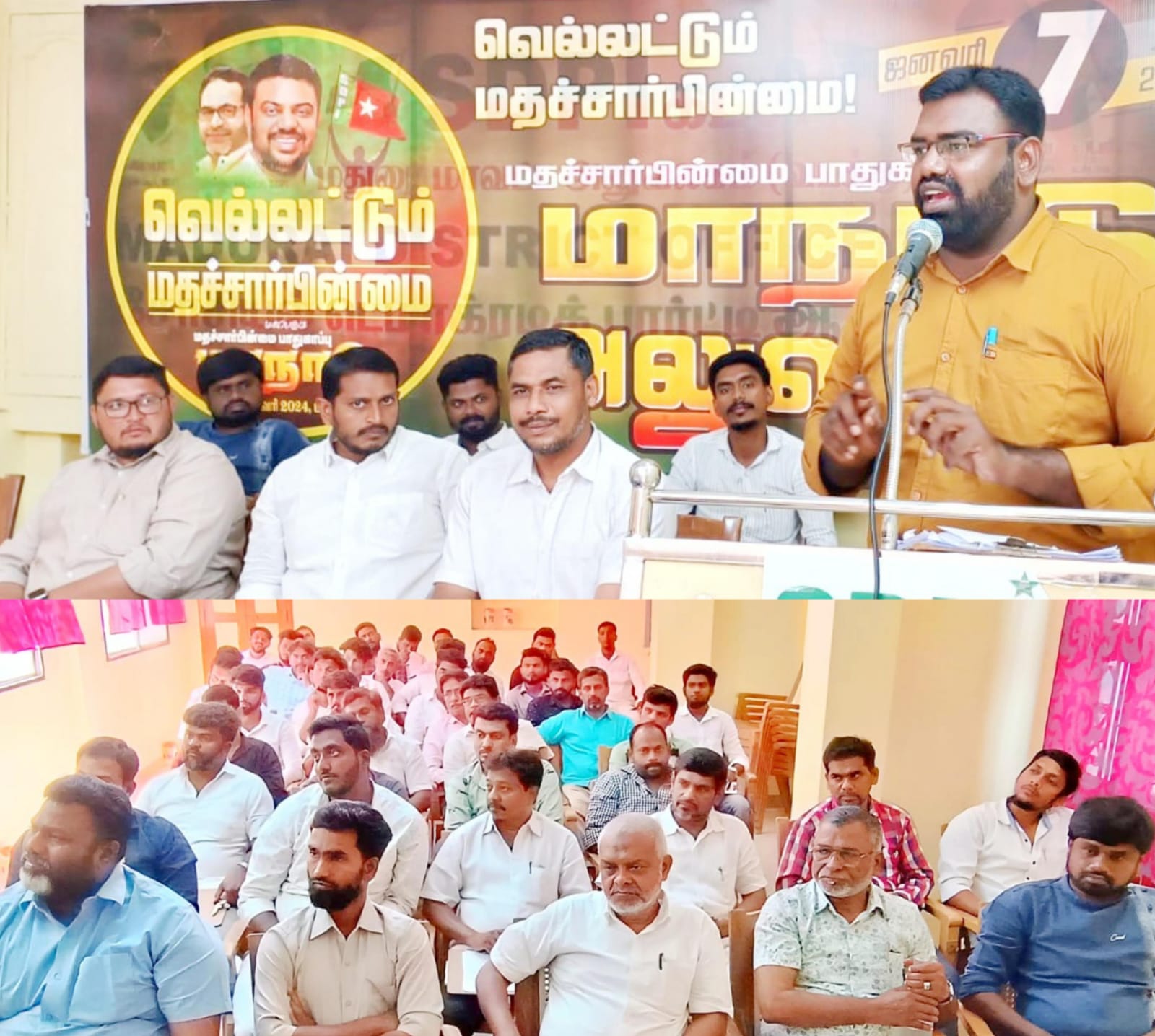 எஸ்.டி.பி.ஐ. கட்சியின் மதுரை மண்டல சமூக ஊடக அணி நிர்வாகிகள் கூட்டம் நடைபெற்றது. மதுரை வடக்கு மாவட்ட அலுவலகத் தில் சமூக ஊடக அணி மாநில இணை ஒருங்கிணைப்பாளர் சதாம் தலைமையில் நடந்தது.
