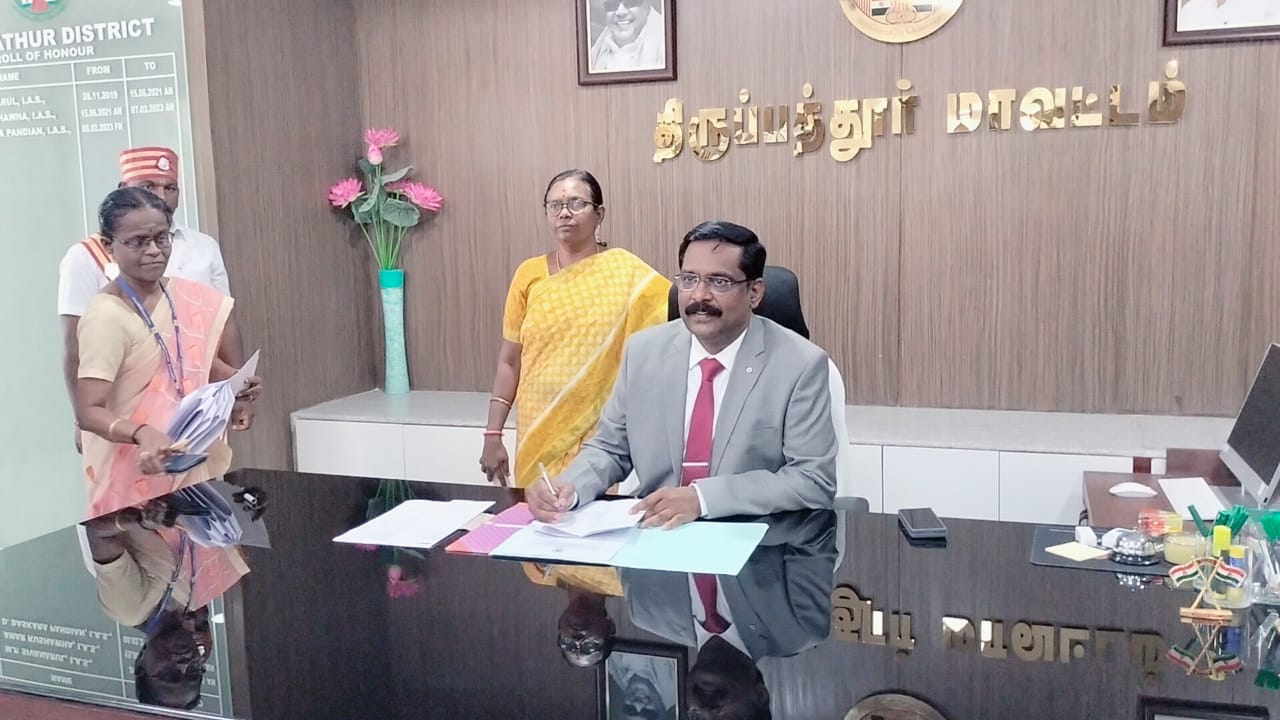 திருப்பத்தூர் புதிய மாவட்ட ஆட்சியராக தர்ப்பகராஜ் பொறுப்பேற்றுக் கொண்டார்.