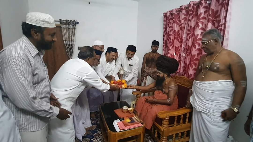 தருமபுரம் ஆதீனம் 27வது நட்சத்திர குருமணிகள் ஸ்ரீலஸ்ரீ மாசிலாமணி தேசிகர் ஞானசம்பந்தர் பரமாச்சாரியார் சுவாமிகள் நேரில் சந்தித்து மத நல்லிக்கனத்தை பேனும் வகையில் இஸ்லாமியர்கள் தாம்பூலத்தில் ஆப்பிள், ஆரஞ்சு, வெற்றிலை, பாக்கு ஆகியவற்றை சீர்வரிசையாக எடுத்துச் சென்று