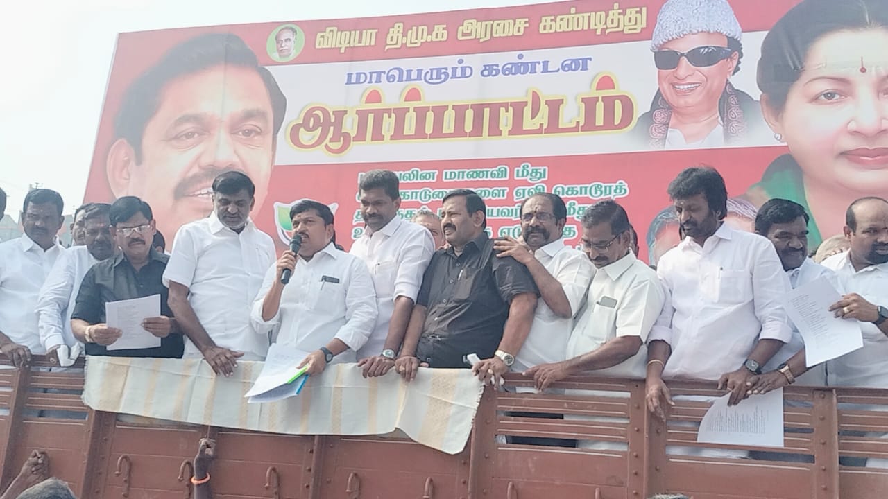 திருப்பத்தூர் மாவட்டம் திருப்பத்தூர் தாலுகா அலுவலகம் அருகில் திருப்பத்தூர் மாவட்ட அதிமுக சார்பில் பட்டியலின மாணவி மீது வன்கொடுமைகளை ஏவி கொடூரத் தாக்குதல் நடத்தியவர்கள் மீது உரிய நடவடிக்கை எடுக்க கோரி வியாழக்கிழமை கண்டன ஆர்ப்பாட்டம் மாவட்ட செயலாளர் கே.சி. வீரமணி தலைமையில் நடைபெற்றது. இதில் வாணியம்பாடி எம்எல்ஏ செந்தில் குமார், முன்னாள் எம்எல்ஏ கள் கே.ஜி.ரமேஷ், கோவி. சம்பத், மாவட்ட வழக்கறிஞர் அணி செயலாளர் ரமேஷ், துணை செயலாளர் தமிழ்செல்வன், மாவட்ட எம்ஜிஆர் மன்ற செயலாளர் தம்பா கிருஷ்ணன், மற்றும் அதிமுகவின் இன்னாள் முன்னாள் நிர்வாகிகள் தொண்டர்கள் உட்பட பலர் கலந்து கொண்டனர்..