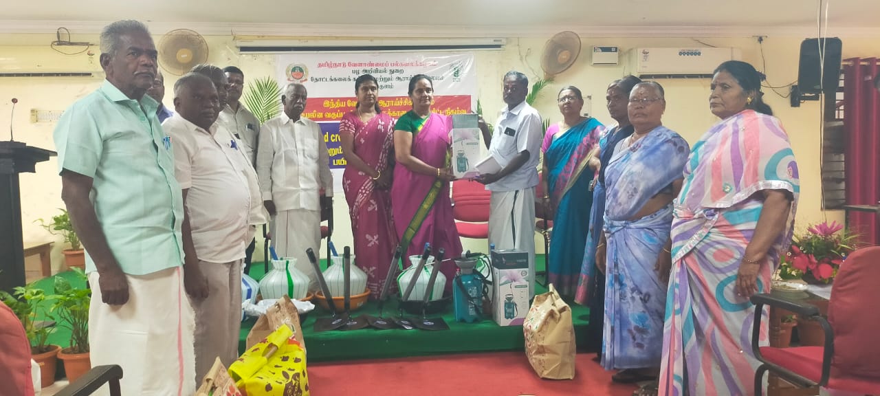 மா, மற்றும் கொய்யாவில் உயர் விளைச்சல் தரும் இரகங்கள் நீர் மற்றும் உர மேலாண்மை பூச்சி மற்றும் நோய் கட்டுப்பாட்டு முறைகள் பற்றி விஞ்ஞானிகள் முனைவர் சு.முத்துலட்சுமி பேராசிரியர் தலைவர் முனைவர் விஜயசாமுண்டீஸ்வரி இணை பேராசிரியர் விஞ்ஞானி முனைவர் சு முத்துராமலிங்கம் இணை பேராசிரியர் முனைவர் கே சுந்தரய்யா பேராசிரியர் முனைவர் சுகன்யா கண்ணா இணை பேராசிரியர் மற்றும் முனைவர் எம். ஞானசேகரன் இணை பேராசிரியர் ஆகியோர் விரிவாக எடுத்துரைத்தனர் பட்டியலின விவசாயிகளுக்கு இடுபொருள் உரங்கள் மற்றும் தெளிப்பான்கள் ஆகியவை விநியோகம் செய்யப்பட்டன