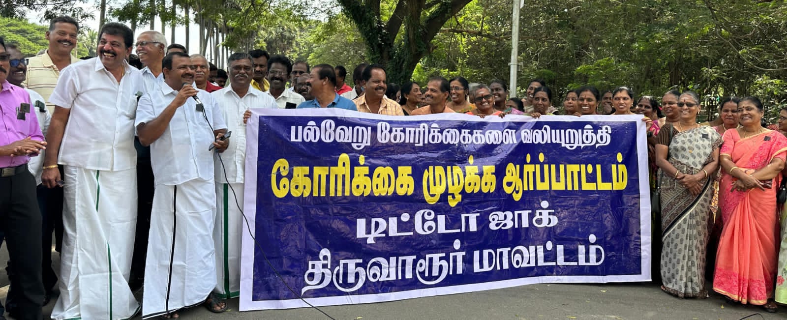 கடந்த 2023 ஆம் ஆண்டு உயர்மட்ட குழு உடன் நடத்திய பேச்சு வார்த்தையில் வாய்மொழியாக ஏற்றுக்கொண்ட 12 கோரிக்கைகள் தொடர்பான எழுத்துப்பூர்வமான ஆணைகளை வெளியிட வேண்டும் என்பன உள்ளிட்ட பல்வேறு கோரிக்கைகளை வலியுறுத்தி கண்டன. முழக்கங்கள் எழுப்பப்பட்டது