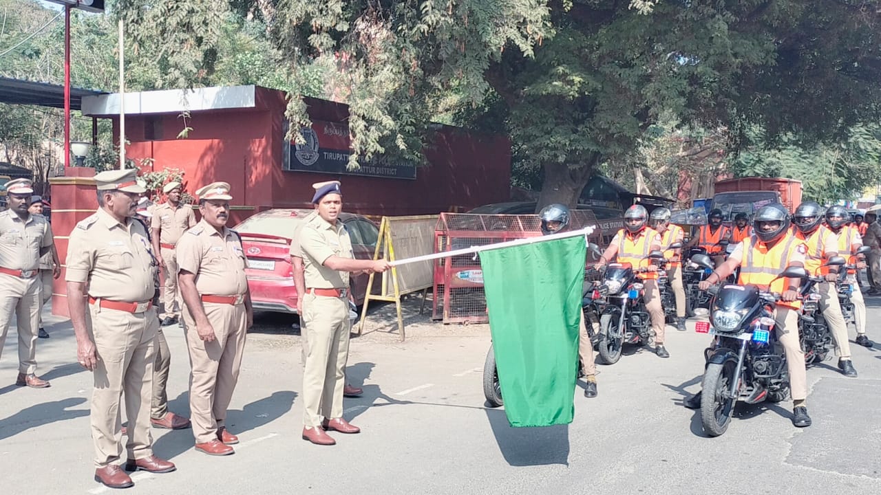இதில் திருப்பத்தூர் மாவட்ட எஸ்பி ஆல்பர்ட் ஜான் கலந்து கொண்டு விழிப்புணர்வு பேரணியை துவக்கி வைத்தார். இந்த GPS பொருந்திய இருசக்கர வாகன விழிப்புணர்வு பேரணி அவசர எண் 100க்கு வரும் அழைப்புக்கு விரைவாக சென்று உரிய நடவடிக்கை எடுப்பதற்காக ஏற்பட்டது. இதில் மாவட்ட கூடுதல் எஸ்பி புஷ்பராஜ், டிஎஸ்பிகள் விநாயகம், செந்தில், காவல் ஆய்வாளர்கள், காவலர்கள் உட்பட பலர் கலந்து கொண்டனர்..