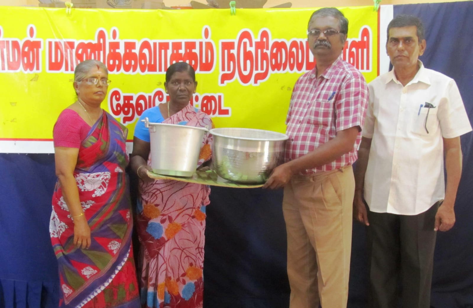தேவகோட்டை – சிவகங்கை மாவட்டம் தேவகோட்டை சேர்மன் மாணிக்கவாசகம் நடுநிலைப் பள்ளியில் சத்துணவு மையத்திற்கு தேவையான பாத்திரங்களை பள்ளியின் சார்பாக வழங்கப்பட்டது.