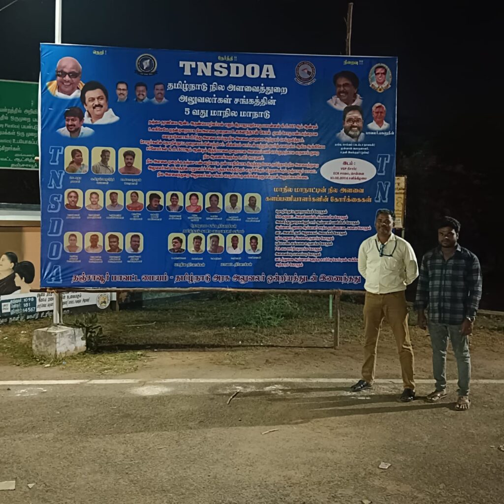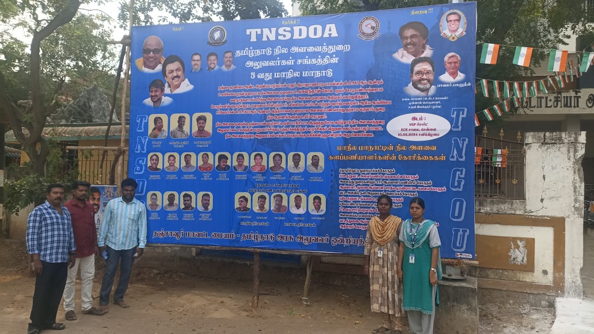 தமிழ்நாடு நில அளவைத் துறை அலுவலர்கள் சங்கத்தின் சார்பில் நில அளவைத்துறையை தொழில்நுட்ப துறையாக்கக் கோருதல்,வட்டத்துணை ஆய்வாளர் மற்றும் ஆய்வாளர்களுக்கு ஊதிய முரண்பாடுகளை சரி செய்யக் கோருதல் ஆகிய பல அம்ச கோரிக்கைகளை வலியுறுத்தி 5 வது மாநில மாநாடு 10.2.2024 சனிக்கிழமை சென்னை V. G. P ரிசார்ட் ல் நடைபெற உள்ளதன் காரணமாக,தமிழ்நாடு நில அளவைத் துறை அலுவலர்கள் சங்கத்தின்