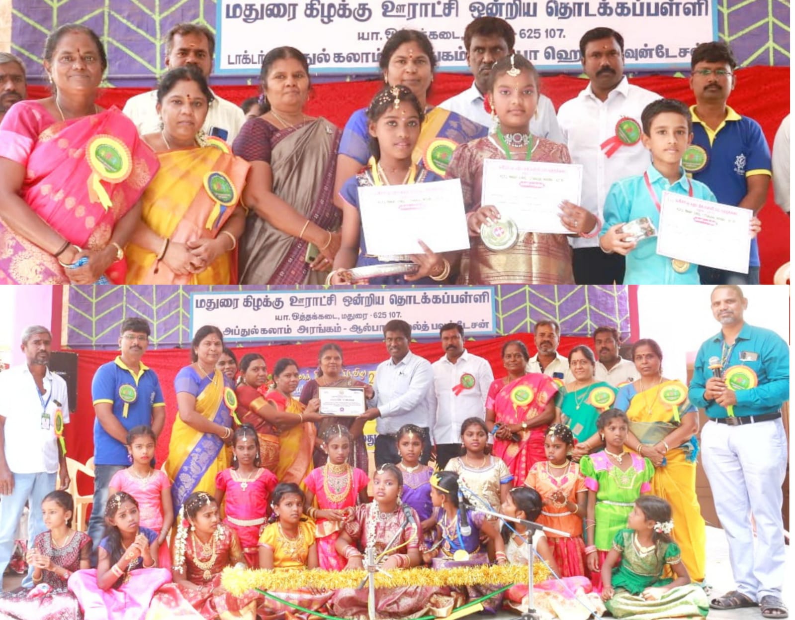 மதுரை மாவட்டக் கல்வி அலுவலர் சுப்பாராஜு, வட்டாரக் கல்வி அலுவலர்கள் ஜான்சி, எஸ்தர் இந்திராணி முன்னிலை வகித்தனர். ஐந்தாம் வகுப்புக்குழந்தைகள் தேவதர்ஷினி, , ஸ்ரீ ஹரி, தர்ஷினி, ஹரிப்பிரியா, முனீஸ்வரி, ஹர்ஷினி ஆகியோர் வரவேற்றனர்.