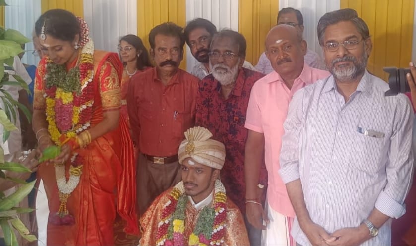 வாழ்த்து” மனிதத்தேனீ ரா.சொக்கலிங்கம் அவர்கள் புதல்வன் மணமகன் சொ.ராம்குமார் மணமகள் நாச்சம்மை தேவி பூஜா திருமண விழாவுக்கு கவிஞர் ஹைக்கூ ரவி, குறும்பட இயக்குனரும், நடிகரும், தென்னிந்திய நடிகர் சங்க உறுப்பினரும், சமூக சேவகருமான சேவா ரத்னா டாக்டர் ஜெ.விக்டர், எ