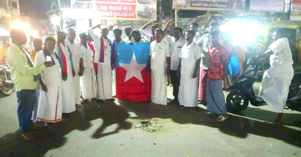 மேலும் விடுதலை சிறுத்தைகள் கட்சியை சேர்ந்த நிர்வாகிகள் மற்றும் 50க்கும் மேற்பட்டோர் கலந்து கொண்டு கையில் கொடியுடன் கண்டன ஆர்ப்பாட்டத்தில் ஈடுபட்டனர்.