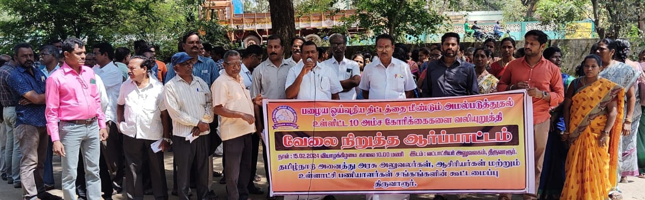 பங்களிப்பு ஓய்வூதிய திட்டத்தை ரத்து செய்து பழைய ஓய்வூதிய திட்டத்தினை மீண்டும் அமல்படுத்த வேண்டும். தமிழக அரசு நிறுத்தி வைத்துள்ள சரண்விடுப்பு ஒப்படைப்பு, அகவிலைப்படி உயர்வு நிலுவைத் தொகை, ஏழாவது ஊதியக்குழு நிலுவைத் தொகை உள்ளிட்ட பணப்பலன்களை மீண்டும் வழங்கிட வேண்டும். ஆறாவது மற்றும் ஏழாவது ஊதியக்குழு மூலம் குறைவான ஊதியம் பெறும் இடைநிலை மற்றும் முதல் நிலை ஆசிரியர்களின் ஊதிய குறைபாட்டினை சமன் செய்ய வேண்டும். பள்ளிகள் மற்றும் அரசு அலுவலகங்களில் ஏற்பட்டுள்ள காலி பணியிடங்களை நிரப்ப வேண்டும். சத்துணவு, அங்கன்வாடி, ஊர் புற நூலகர்கள், செவிலியர்கள், ஓட்டுநர்கள் மற்றும் மேல்நிலை நீர் தேக்க தொட்டி பணியாளர்கள், தூய்மைக் காவலர்கள் அனைவரையும் பணி நிரந்தரம் செய்து காலம் முறை ஊதியம் வழங்கவேண்டும்.
