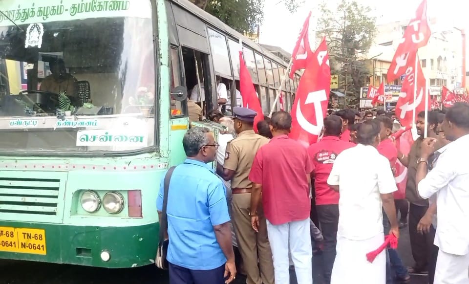போராட்டத்தில் ஈடுபட்ட சுமார் 100 மேற்பட்டோரை கும்பகோணம் துணைக் காவல் கண்காணிப்பாளர் கீர்த்தி வாசன் தலைமையிலான. காவல் ஆய்வாளர் மற்றும் போலீசார் கைது செய்து தனியார் திருமண மண்டபத்தில் தங்க வைத்தனர்..