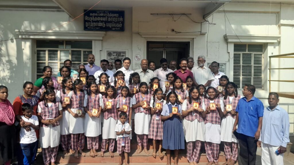 கலந்து கொண்ட அனைத்து மாணவச் செல்வங்களுக்கும் புதுவை தமிழ் சங்கத் தலைவர் முனைவர் முத்து திருக்குறள் புத்தகம் வழங்கி பாராட்டினார்.