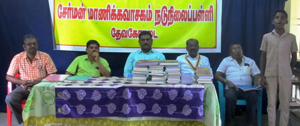 தேவகோட்டை – சிவகங்கை மாவட்டம் தேவகோட்டை சேர்மன் மாணிக்க வாசகம் நடுநிலைப் பள்ளிக்கு தேவகோட்டை வட்டாட்சியர் ரூபாய் 11,000 மதிப்பிலான புத்தகங்களை வழங்கி ஆச்சரியத்தில் அசத்தினார்.
