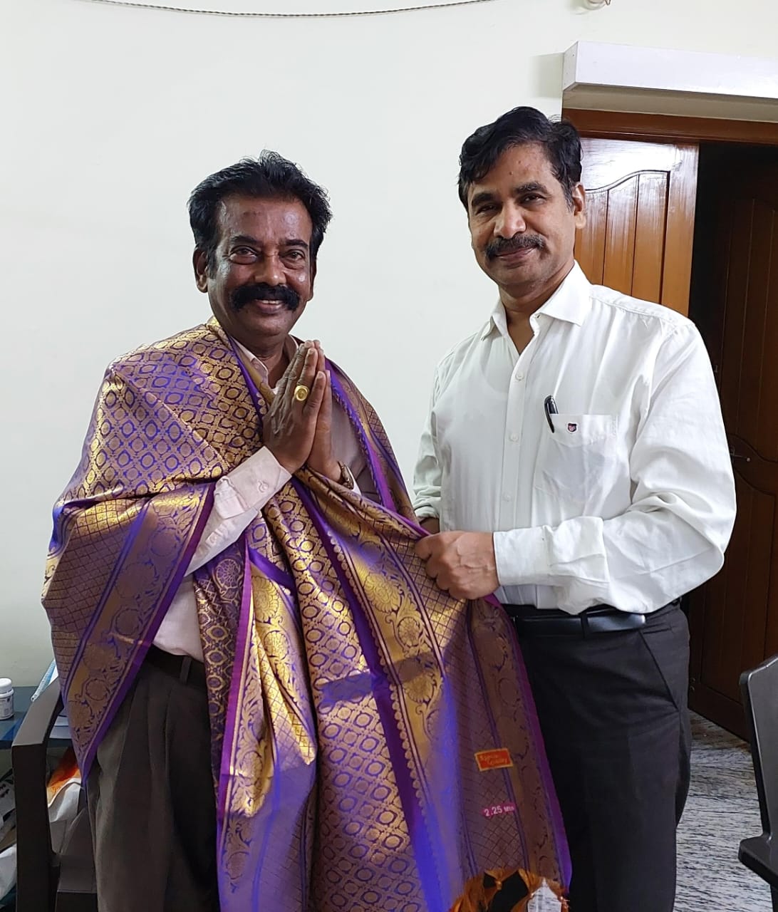 தமிழ்ச்செம்மல் விருது பெற்ற கவிஞர் இரா.இரவி சென்னையில் முதுமுனைவர் வெ.இறையன்பு அவர்கள் பொன்னாடைப் போர்த்தி