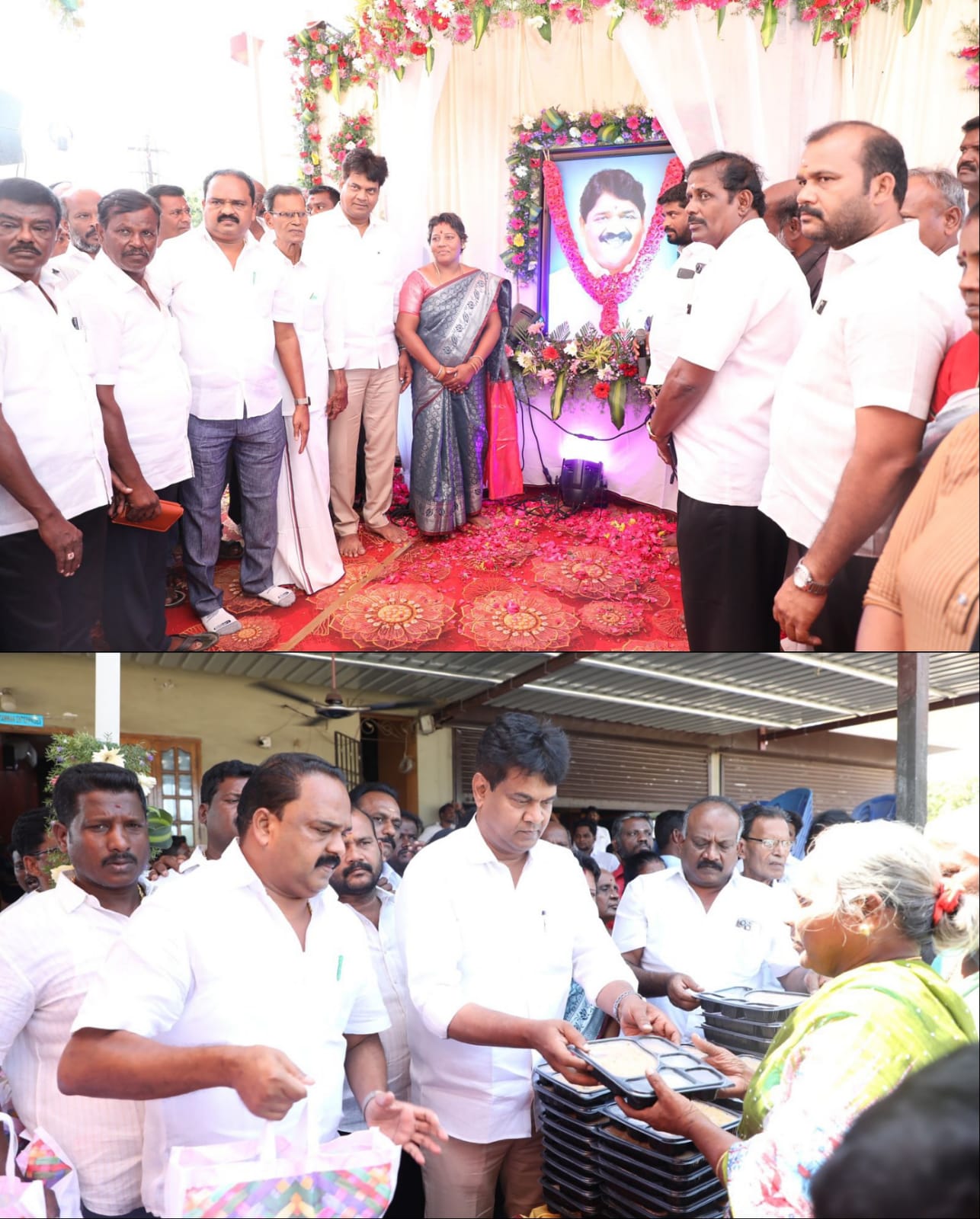 திருவொற்றியூர் முன்னாள் மீன்வளத்துறை அமைச்சர் கே பி பி சாமி அவர்களது நான்காவது ஆண்டு நினைவு நாளை முன்னிட்டு வடசென்னை நாடாளுமன்ற உறுப்பினர் கலாநிதி வீராசாமி திருவொற்றியூர் கே வி கே குப்பம் பகுதியில் மறைந்த கே பி பி சாமி அவர்களின் திரு உருவ படத்திற்கு மாலை அணிவித்து மலர் தூவி மரியாதை செலுத்தி பின்னர் முதியோர் மற்றும் திறனாளிகளுக்கு உட்பட்ட பகுதி மக்களுக்கு உணவு மற்றும் மளிகை பொருட்கள் அடங்கிய தொகுப்பினை வழங்கினார் இந்த நிகழ்ச்சியில் திருவொற்றியூர் சட்டமன்ற உறுப்பினர் கே பி சங்கர் மற்றும் கட்சி மூத்த நிர்வாகிகள் உடன் இருந்தனர்