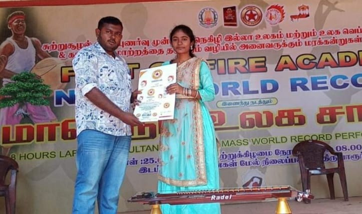 சுற்றுச்சூழல் விழிப்புணர்வு உலக சாதனை நிகழ்வில் 800 க்கும் மேற்பட்ட மாணவர்கள் ஆசான்கள் பெற்றோர்கள் பொதுமக்கள் 1500க்கும் மேற்பட்டோர் ஒரே நேரத்தில் கூடியிருந்து கலைத்திருவிழா போன்று நடைபெற்றது.