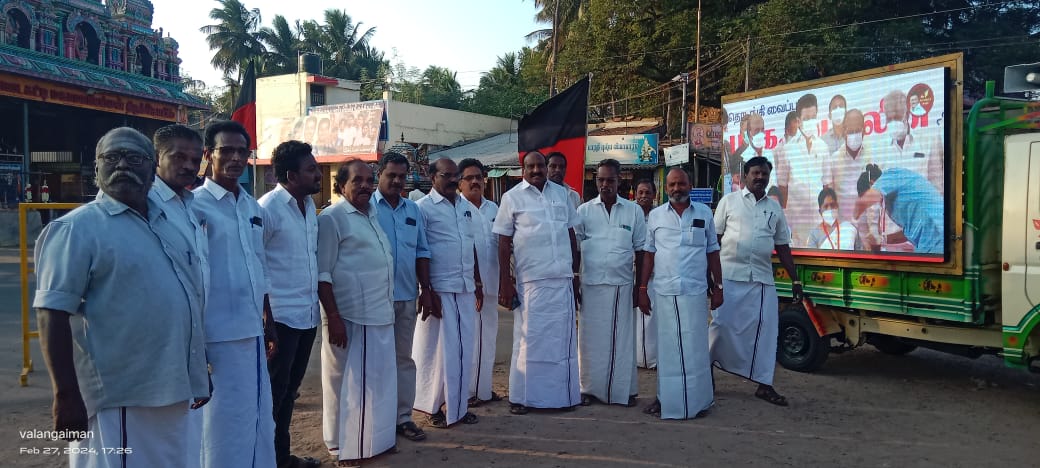 தொடர்ந்து வலங்கைமான் வரதராஜன் பேட்டை மகா மாரியம்மன் ஆலயம் எதிர்ப்புறம், தமிழ்நாடு முதலமைச்சரின் அரசின் திட்டங்களை மக்களிடம் எடுத்து கூறும் விதமாக எல் இ டி திரையின் வாயிலாக பிரச்சாரமும் நடைபெற்றது.