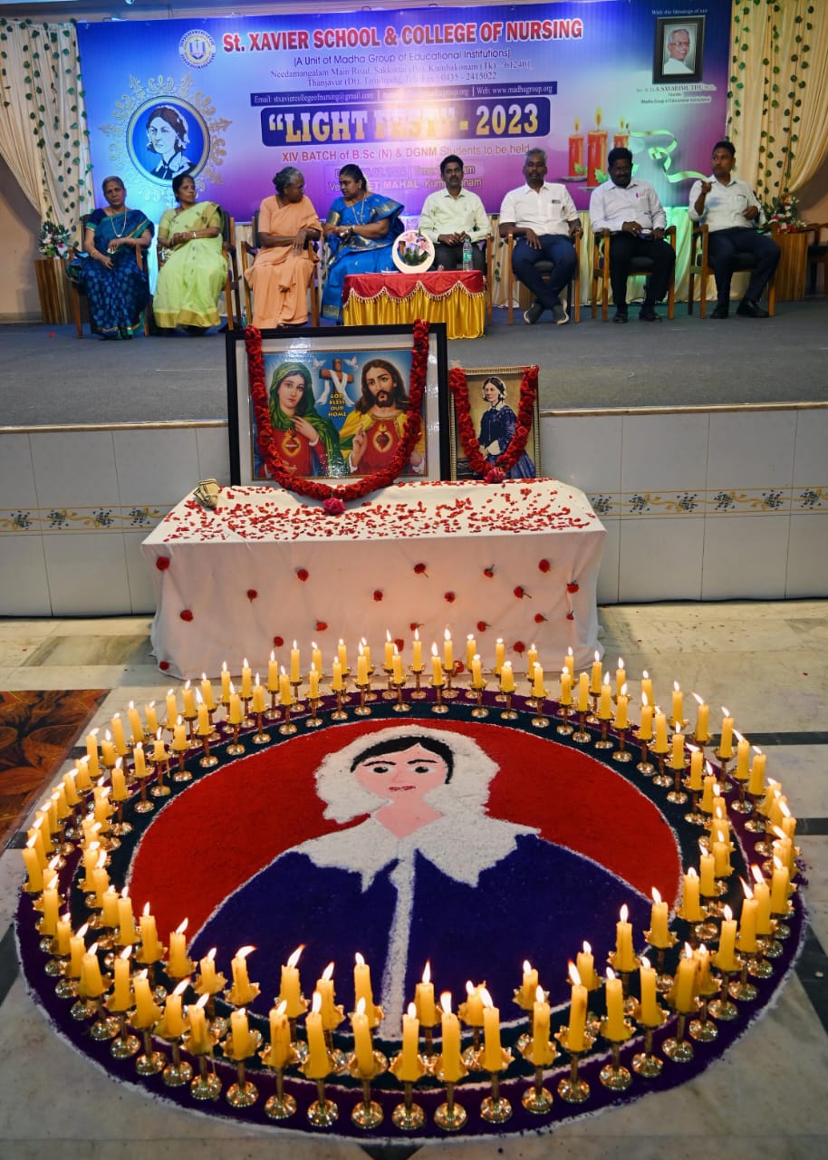 கும்பகோணம் தாலுக்கா சாக்கோட்டையில் அமைந்துள்ள மாதா கல்வி நிறுவனங்களின் கீழ் இயங்கிவரும் செயின்ட் சேவியர் செவிலியர் பள்ளி மற்றும் கல்லூரியின் 14வது உறுதிமொழி ஏற்பு- விளக்கு விழாவானது கும்பகோணம்