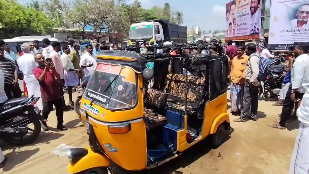 சீர்காழியில் முன்னாள் சென்ற ஆட்டோவிற்கு வழி விடாததால் ஏற்பட்ட தகராரை தட்டிக்கேட்ட சக ஆட்டோ ஓட்டுநரின் ஆட்டோவை தீ வைத்து எரித்த லாரி ஓட்டுநர் கைது.சீர்காழி போலீசார் விசாரணை.