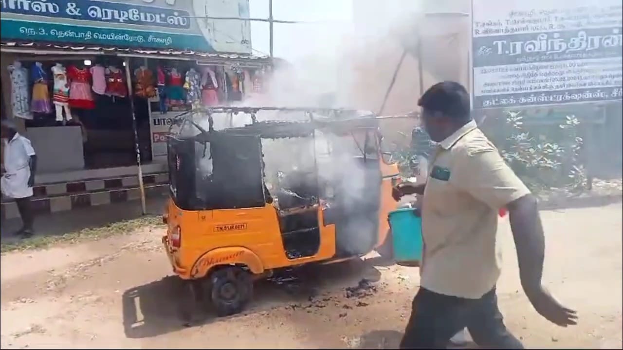 அப்பொழுது முன்விரோதம் காரணமாக சீர்காழி அய்யனார் கோவில் தெருவை சேர்ந்த லாரி டிரைவர் ராமு திடீரென நிறுத்தப்பட்டிருந்த ஆட்டோ மீது பெட்ரோலை ஊற்றி தீ வைத்தார்.
