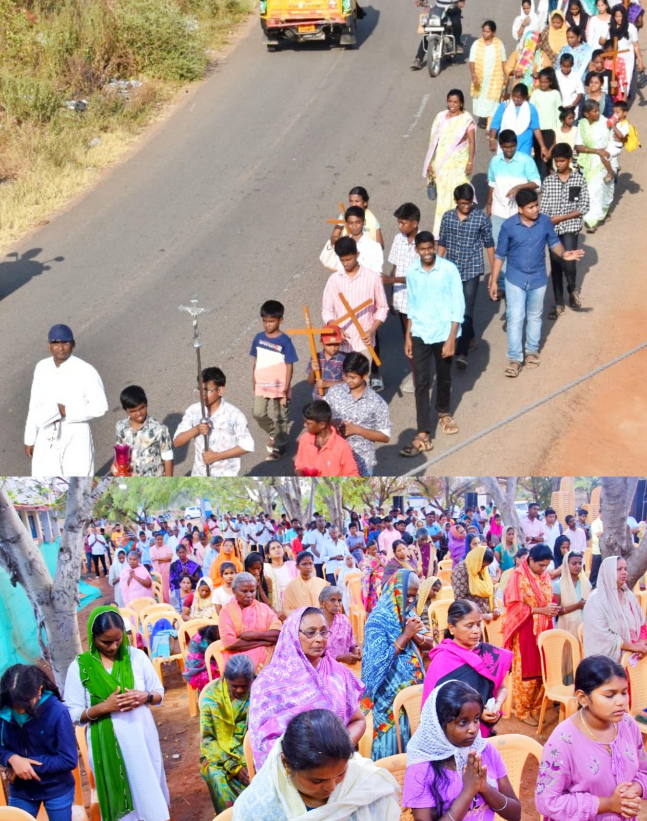 மறைக்கல்வி குழந்தைகள் முதல் பெரியவர்கள் வரை சுமார் 350 பக்தர்கள் கலந்து கொண்ட இந்நிகழ்வினை பங்குத்தந்தையுடன் இணைந்து பங்குப்பேரவையினர் வழிநடத்தினர்.