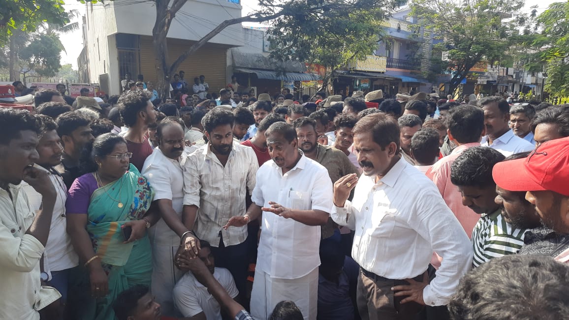 இதனைத் தொடர்ந்து அப்பகுதி மக்கள் சாலை மறியல் போராட்டத்தில் ஈடுபட்டனர்.உடனடியாக சம்பவ இடத்துக்கு விரைந்த மனிதநேய மக்கள் சேவை இயக்க நிறுவனத் தலைவரும் உருளையன்பேட்டை தொகுதி சட்டமன்ற உறுப்பினருமான திரு.G.நேரு (எ)குப்புசாமி MLA அவர்கள் மக்களுக்கு ஆதரவாக போராட்டத்தில் ஈடுபட்டார்.