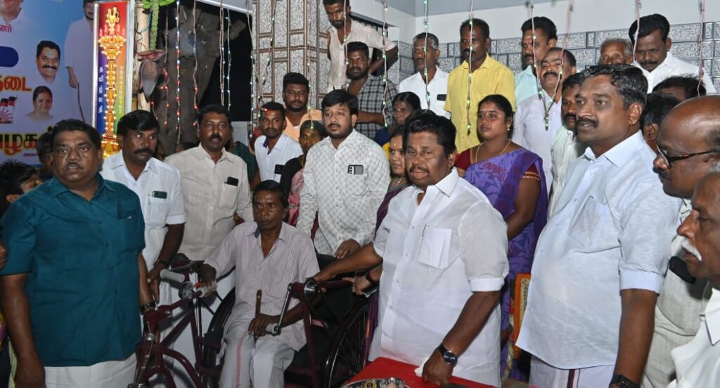 மாற்றுத்திறனாளி மூன்று சக்கர சைக்கிள் தொழிலாளருக்கு சலவை எந்திரங்களை அன்பழகன் எம்.எல்.ஏ வழங்கினார்.