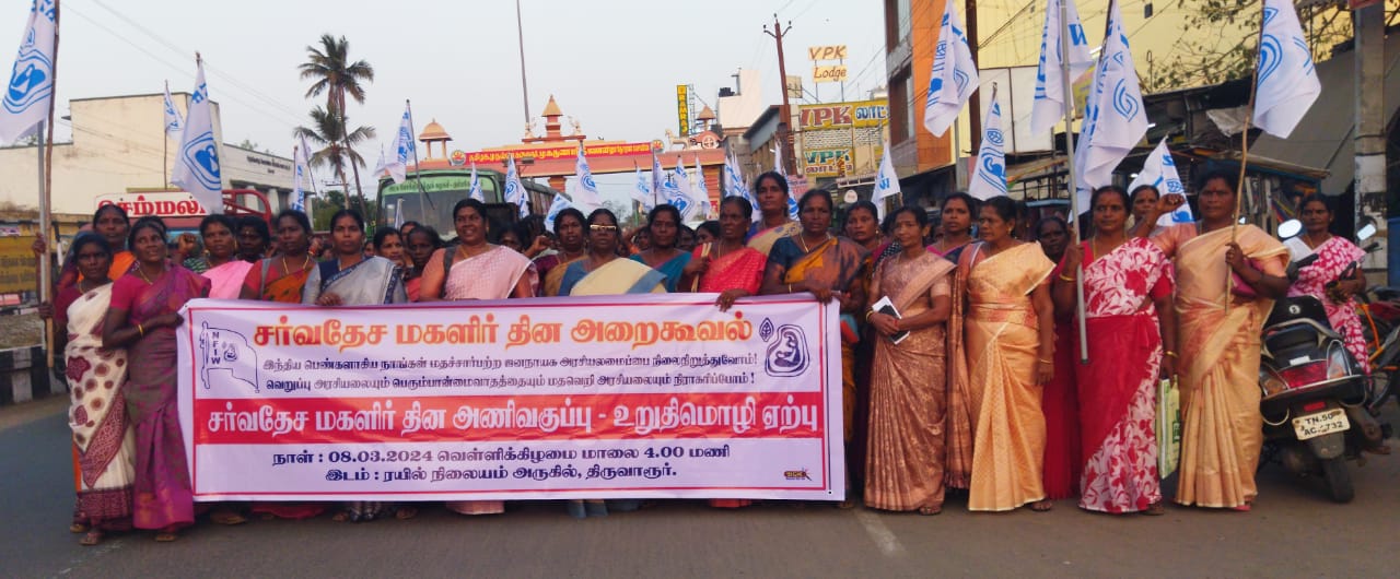 திருவாரூர் மாவட்ட இந்திய மாதர் தேசிய சம்மேலனம் அமைப்பின் சார்பில் சர்வதேச மகளிர் தின அணிவகுப்பு மற்றும் உறுதிமொழி ஏற்பு திருவாரூர் மாவட்ட குழு இந்திய மாதர் தேசிய சம்மேளனம் அமைப்பின் சார்பில் சர்வதேச மகளிர் தின அணிவகுப்பு மற்றும் உறுதிமொழி ஏற்பு நடைபெற்றது