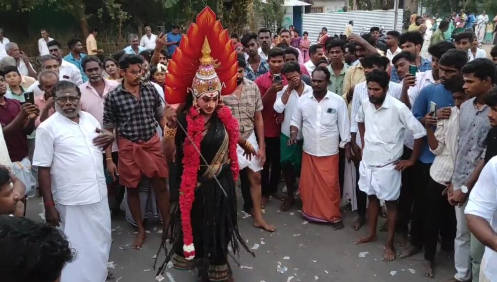 தரங்கம்பாடி அருகே திருக்கடையூரில் உள்ள புகழ்பெற்ற ஸ்ரீ அங்காள பரமேஸ்வரி அம்மன் ஆலயத்தில் மஹா சிவராத்திரியையொட்டி மயான சூறை நிகழ்வு அம்மன் வீதியுலா மற்றும் காளியாட்டம் நடைபெற்றது ஆயிரக்கணக்கான பக்தர்கள் சுவாமி தரிசனம்.