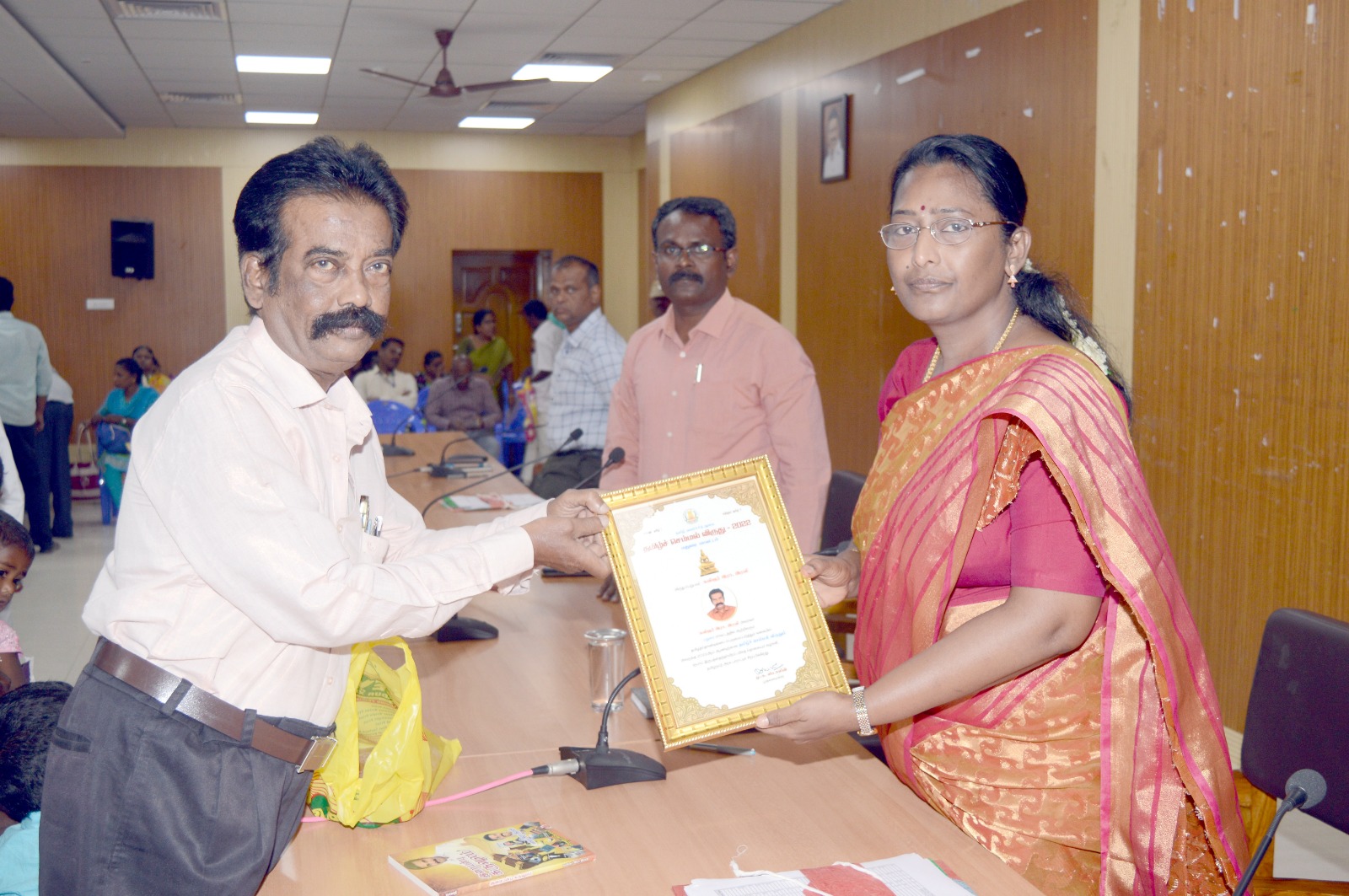 மதுரை மாவட்ட ஆட்சியர் அவர்கள் கவிஞர் இரா.இரவி, மதுரை மாவட்டத் தமிழ்ச்செம்மல் விருது பெற்றமைக்கு கூட்ட அரங்கிற்கு அழைத்துப் பாராட்டினார்கள்.அவர் எழுதிய “இறையன்பு கருவூலம்” நூலை ஆட்சியருக்கு வழங்கி மகிழ்ந்தார்.