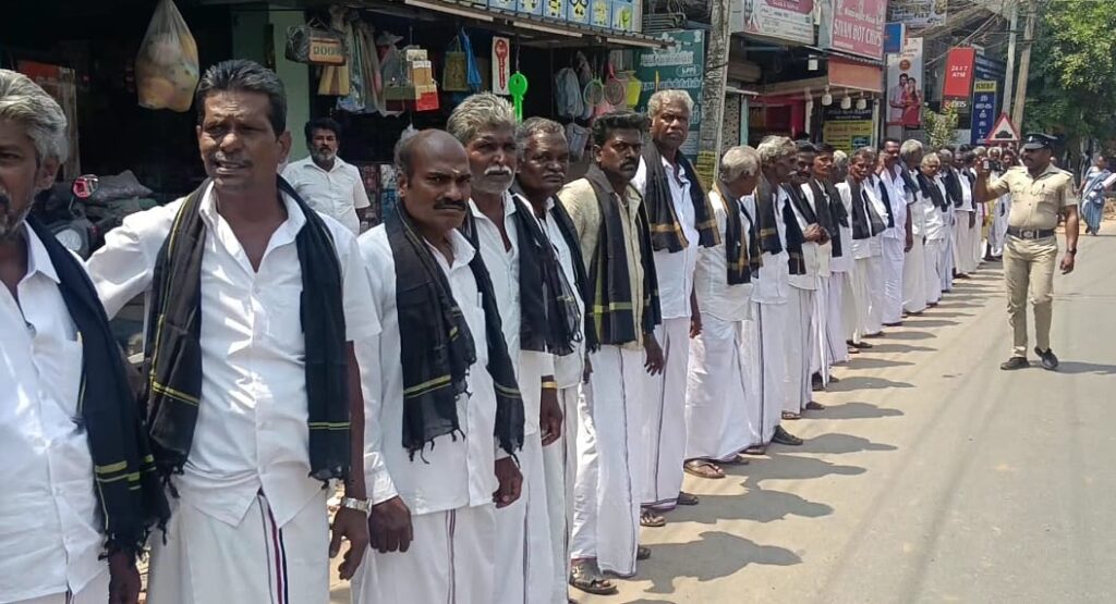 மனித சங்கிலி போராட்டத்தில் ஈடுபட்டனர். இதில் ஆண்கள் பெண்கள் என, அதிமுக-வின் தொண்டர்கள் பலர் கலந்து கொண்டனர்.