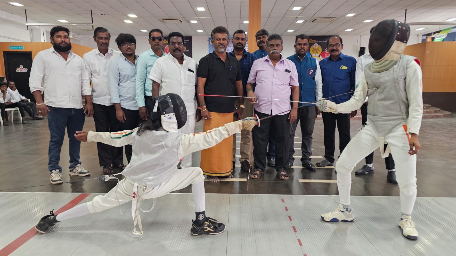 ஜூனியர் பிரிவில் 20 வயதுக்கு உட்பட்டோருக்கான பிரிவில்,சென்னை,கோவை,திருச்சி,மதுரை,கன்னியாகுமரி,நாமக்கல்,சேலம்,தஞ்சாவூர் என தமிழகத்தின் பல்வேறு மாவட்டங்களில் இருந்தும் 100 க்கும் மேற்பட்ட வீரர்,வீராங்கனைகள் கலந்து கொண்டனர் இதில் ஃபாயில், சேபர், எப்பி ஆகிய மூன்று பிரிவின் கீழ், போட்டிகள் நடைபெற்றன…